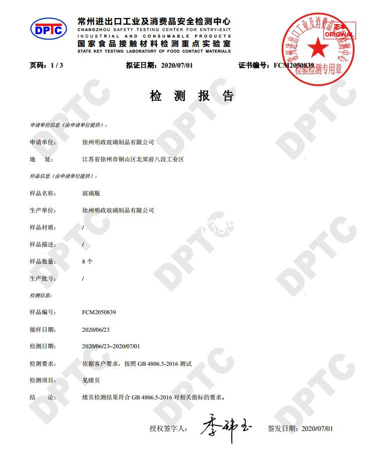 產(chǎn)品檢測報告 聯(lián)系電話(huà):18652213550 來(lái)源:徐州明政玻璃制品 發(fā)布時(shí)間:2021-09-02 上一篇:先進(jìn)企業(yè) 下一篇:沒(méi)有了